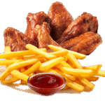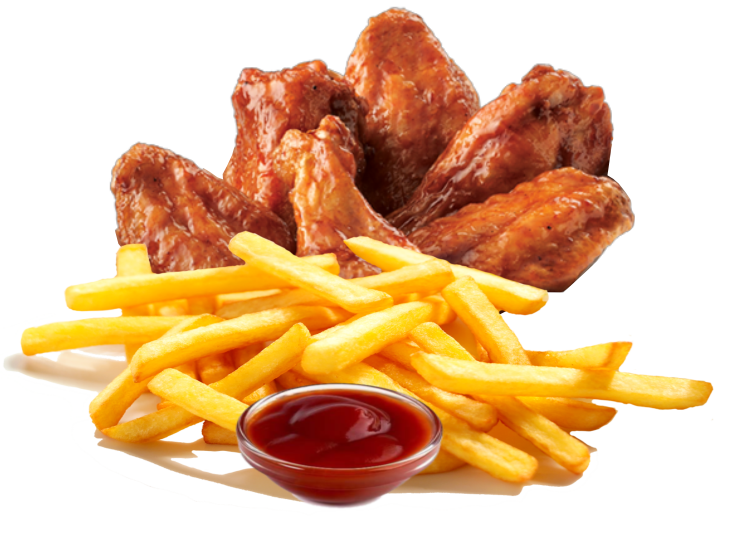 with fries, small – 6 pieces, large – 8 pieces